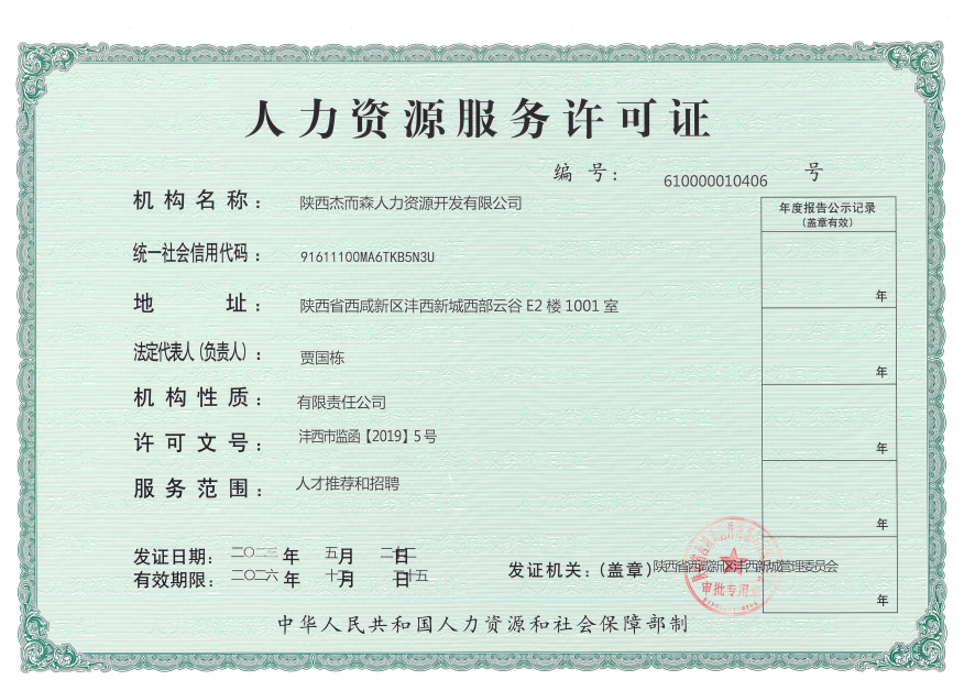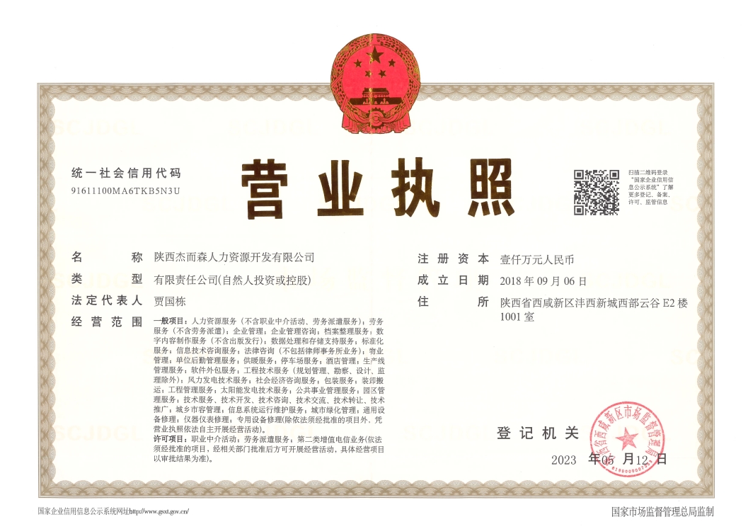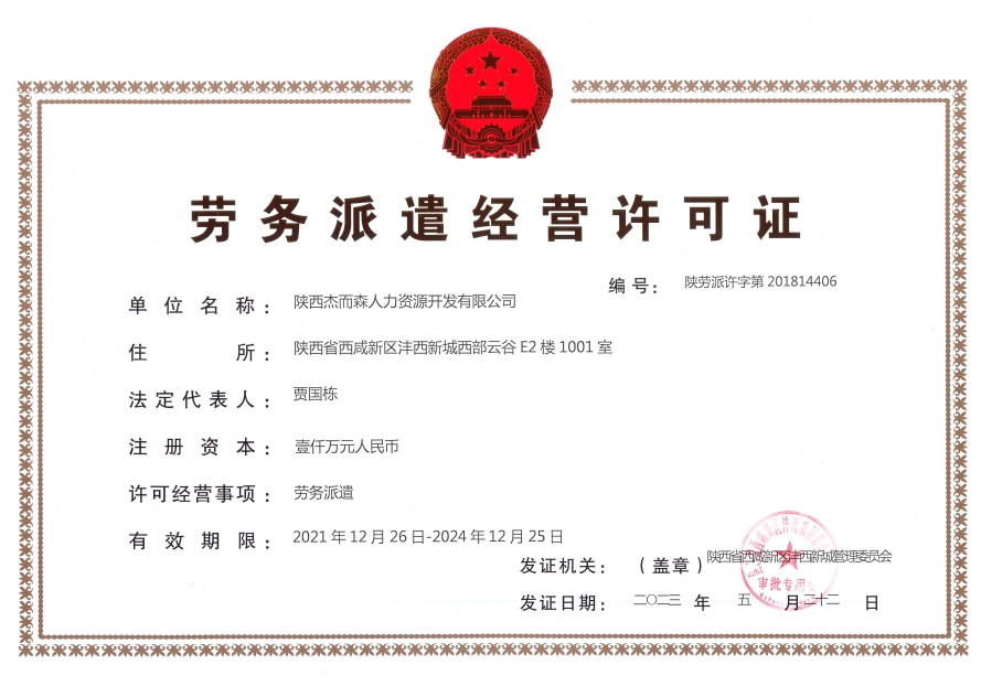 陜西杰而森人力資源開發(fā)有限公司成立于2018年,是一家以人力資源服務(wù)為主業(yè)的市場(chǎng)化專業(yè)機(jī)構(gòu)。公司總部位于陜西省西咸新區(qū)秦創(chuàng)原人才大市場(chǎng),下設(shè)6家分子公司。公司的主營(yíng)業(yè)務(wù)包括:勞務(wù)派遣、勞務(wù)外包、業(yè)務(wù)流程外包、招聘、培訓(xùn)、檔案整理和電子化等服務(wù)。